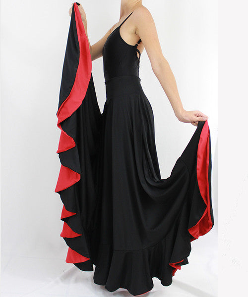 Straight-line dance skirt with a slit on the side. Made from Lycra fabric Available in black
